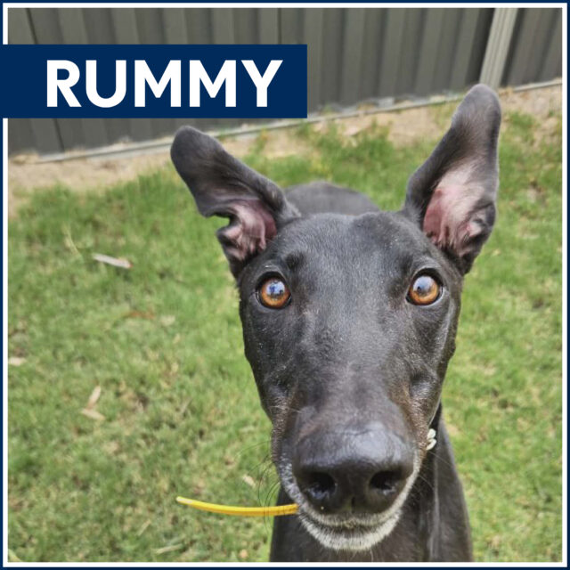 Rummy is a greyhound who’s not a gamble but a guaranteed winning hand. Rummy plays with toys with a full deck and knows exactly how to score smiles from everyone he shows his zoomies off to.