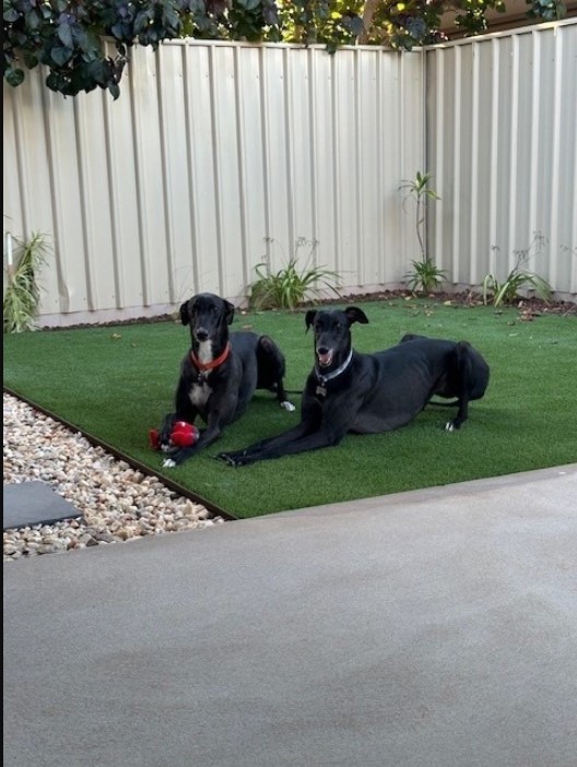 Jackie and Jasper joined Georgie and family in August. The lucky hounds were on their way to sunny Karratha! The duo are thriving in their furever home.
