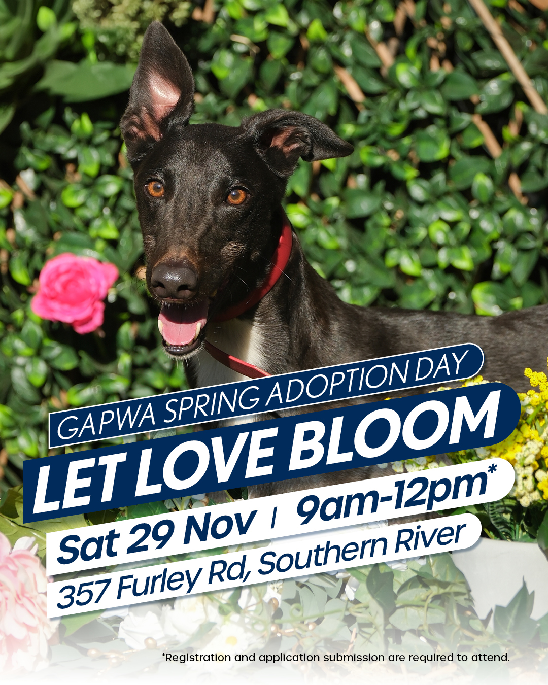 Greyhounds as Pets WA (GAPWA) is thrilled to invite all seasoned greyhound lovers and potential adopters to our Spring Adoption Day on Saturday 29 November 2025 where love will bloom!