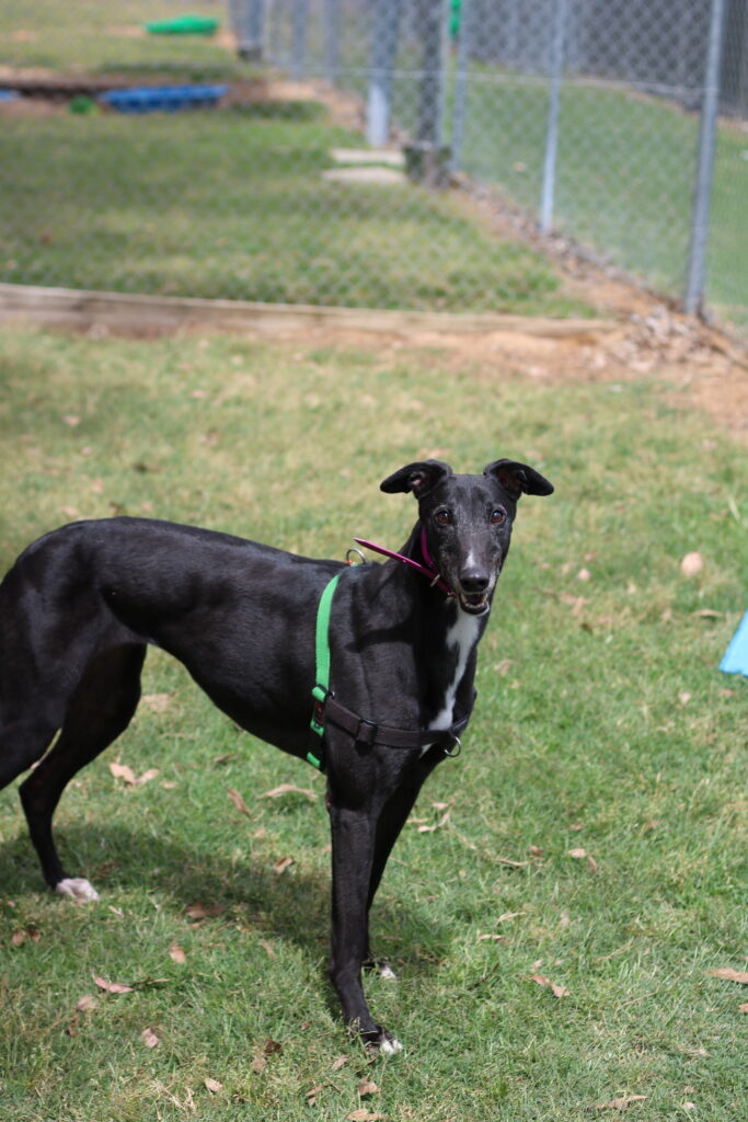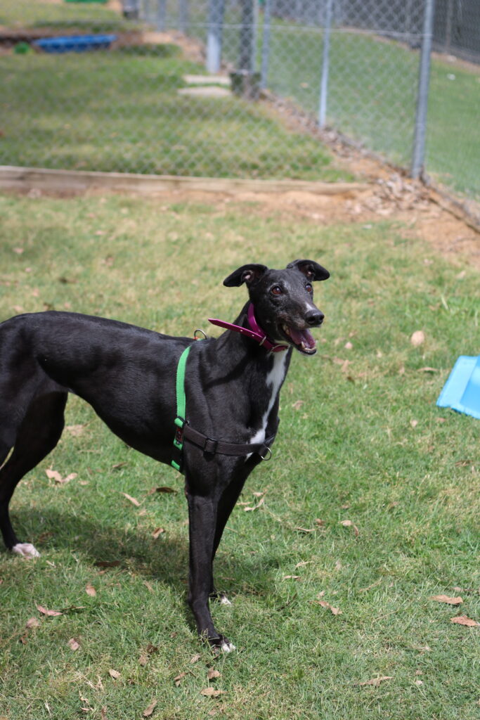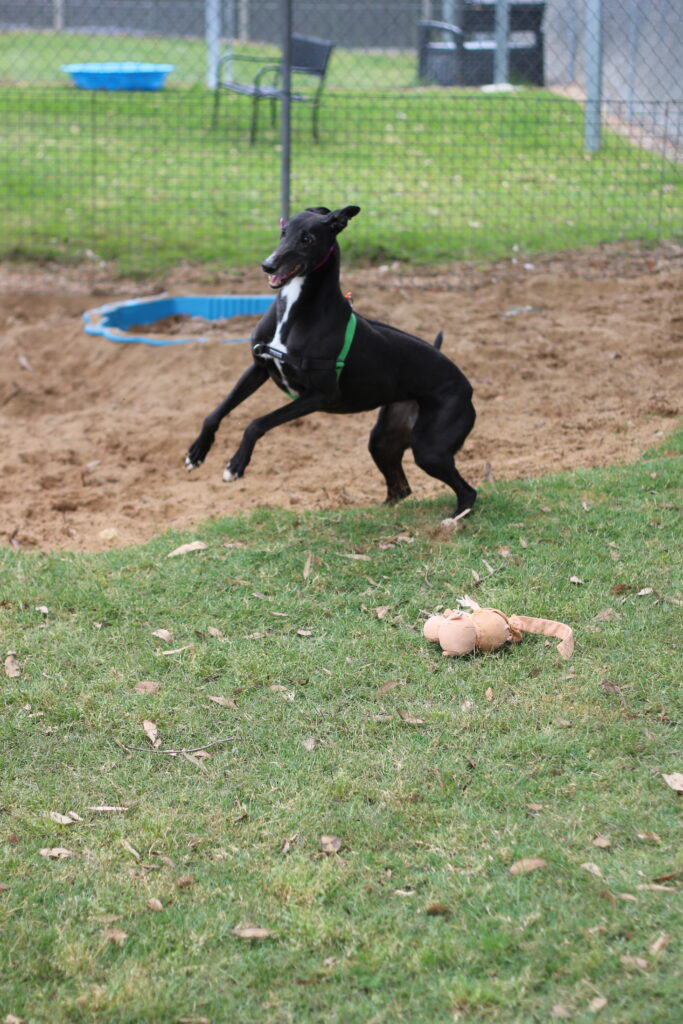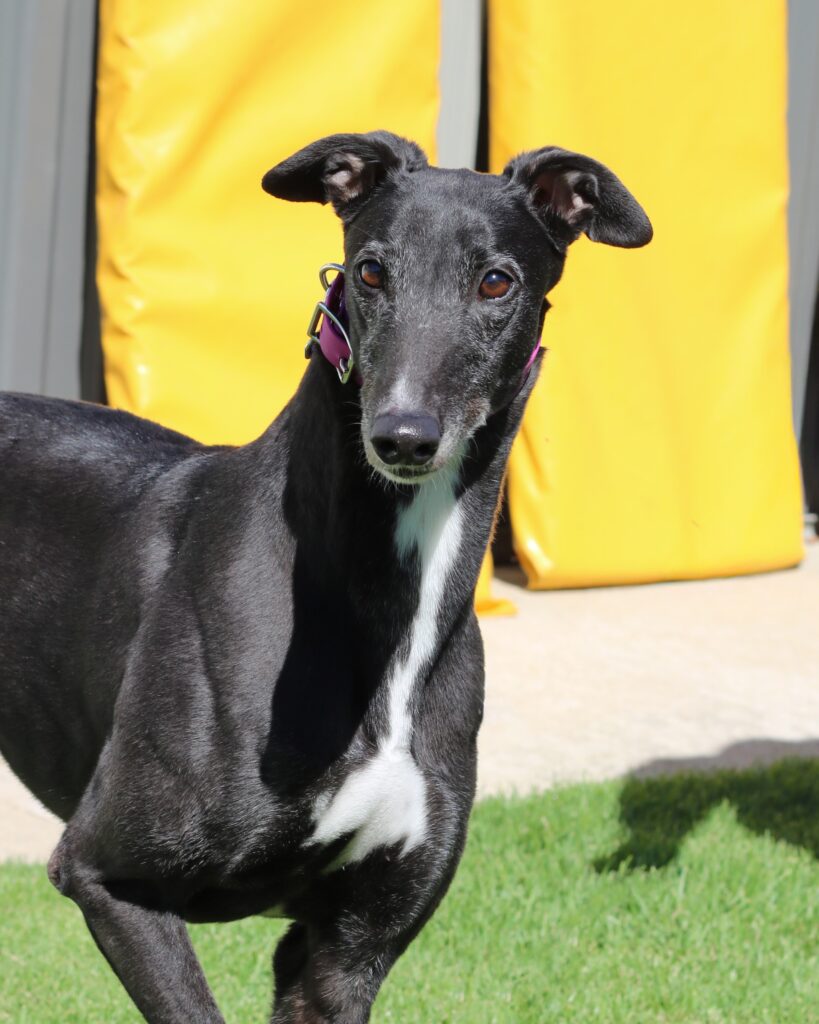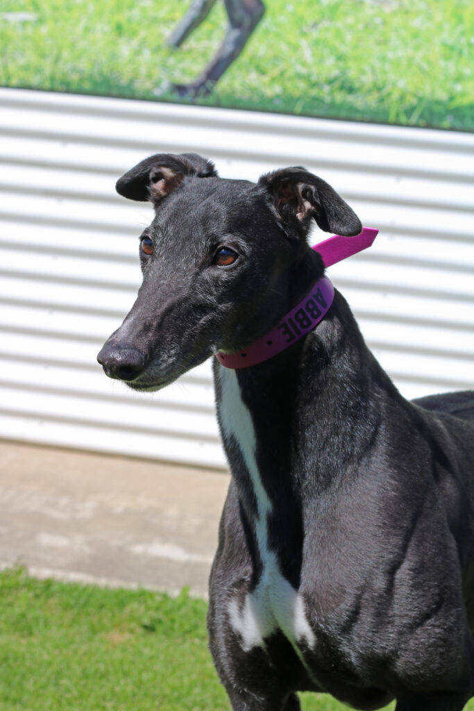Abbie is a sweet and friendly hound who loves to have a zoomie play with you before snuggling into your hand for pats. Abbie could share her home with doggie ‘siblings’ of any size if they compliment her playful and social nature. She has been assessed as unable to go to a home with cats. The little humans in Abbie’s life could be as young as five years old as long as they can give her a sweet and gentle approach in the first moments of meeting, then she is sure to shower them in love. Abbie can stay home alone for up to six hours at a time and with a bit of training or a canine companion this could stretch longer. She is sure to welcome you back home with big wriggles and maybe a zoomie or two. Like most greyhounds Abbie’s exercise needs are easy-going, one or two 20-minute walks and a play session a day will keep her tail wagging and her heart happy.