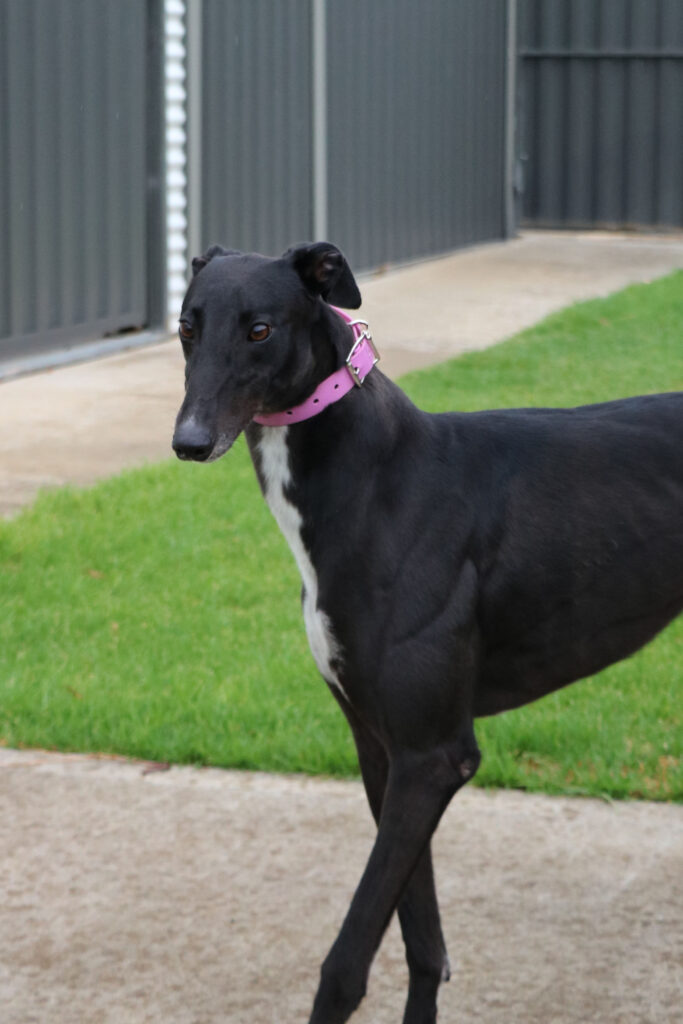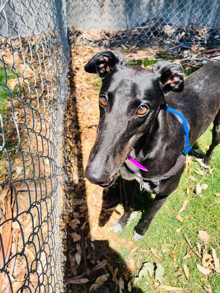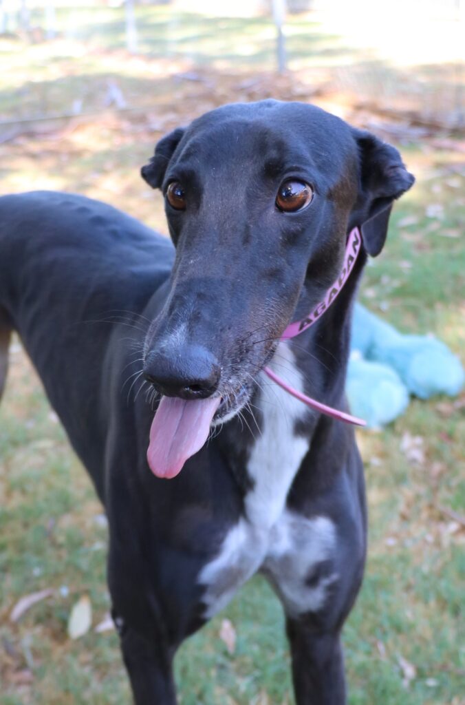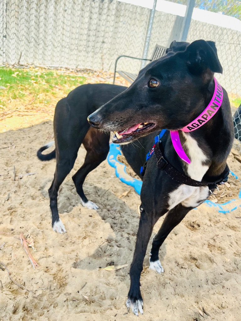 Agapanthus is a sweet, friendly and affectionate little blossom. She has the spirit of a happy bumble bee in a lush garden. Agapanthus could share her garden bed with doggie ‘siblings’ of any size from tiny sprouts to tall trees. Agapanthus has been assessed as unable to go to a home with cats. She’d preferably join a home where all humans are nine years or older, but she could potentially join younger children if they’re sensible and dog savvy. Agapanthus can stay home alone for up to three hours, and with canine company and consistent routine she may be able to stretch that as she settles. Agapanthus is a typical greyhound when it comes to exercise one or two 20‑minute walks will keep her tail wagging like a branch in the wind. She does she love to sniff and take her time on walks investigating gardens, leaves, petals and breezes.