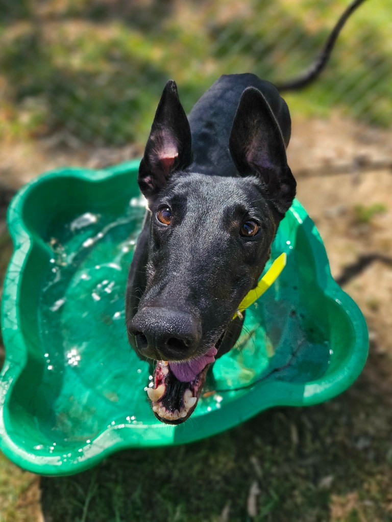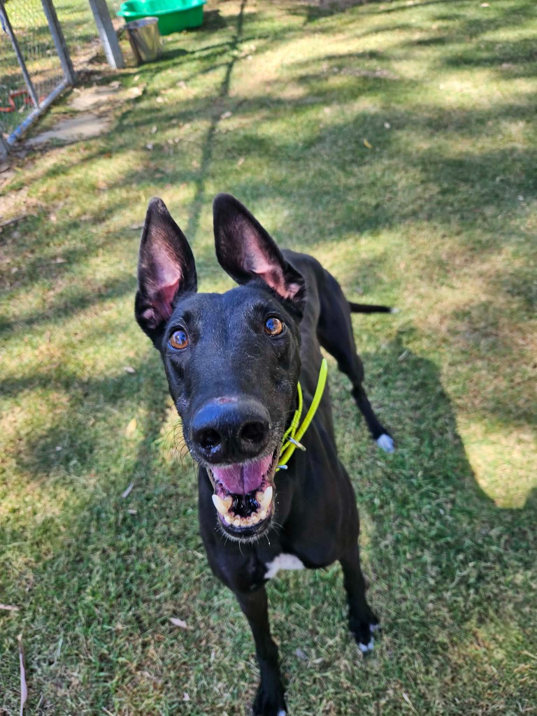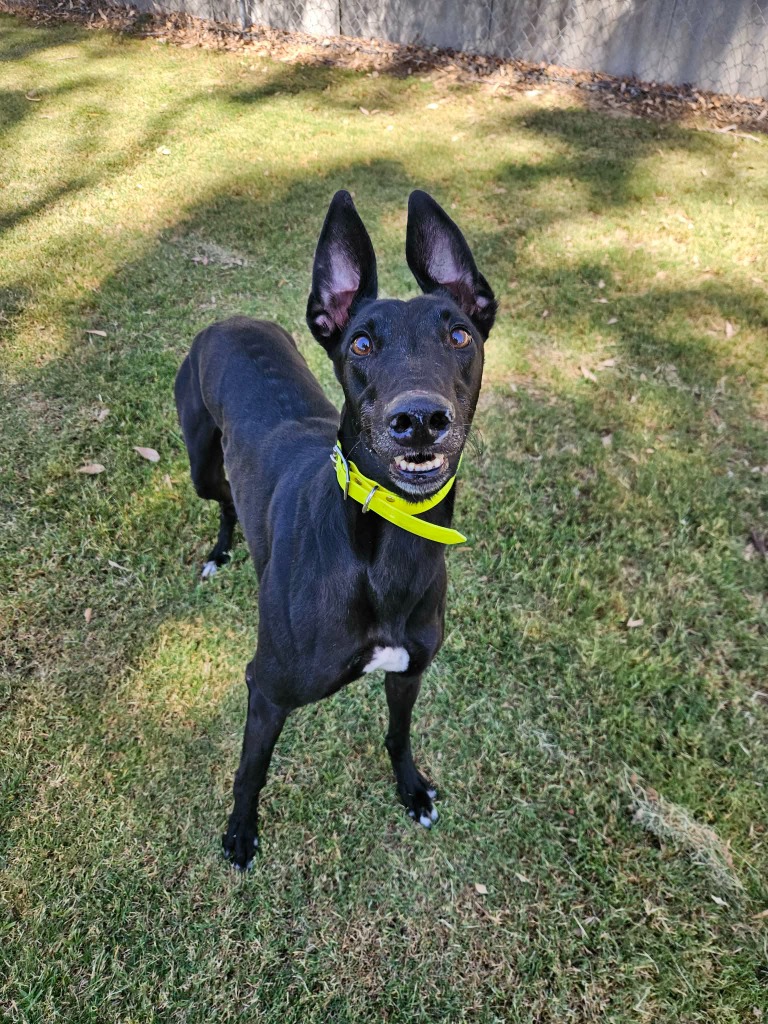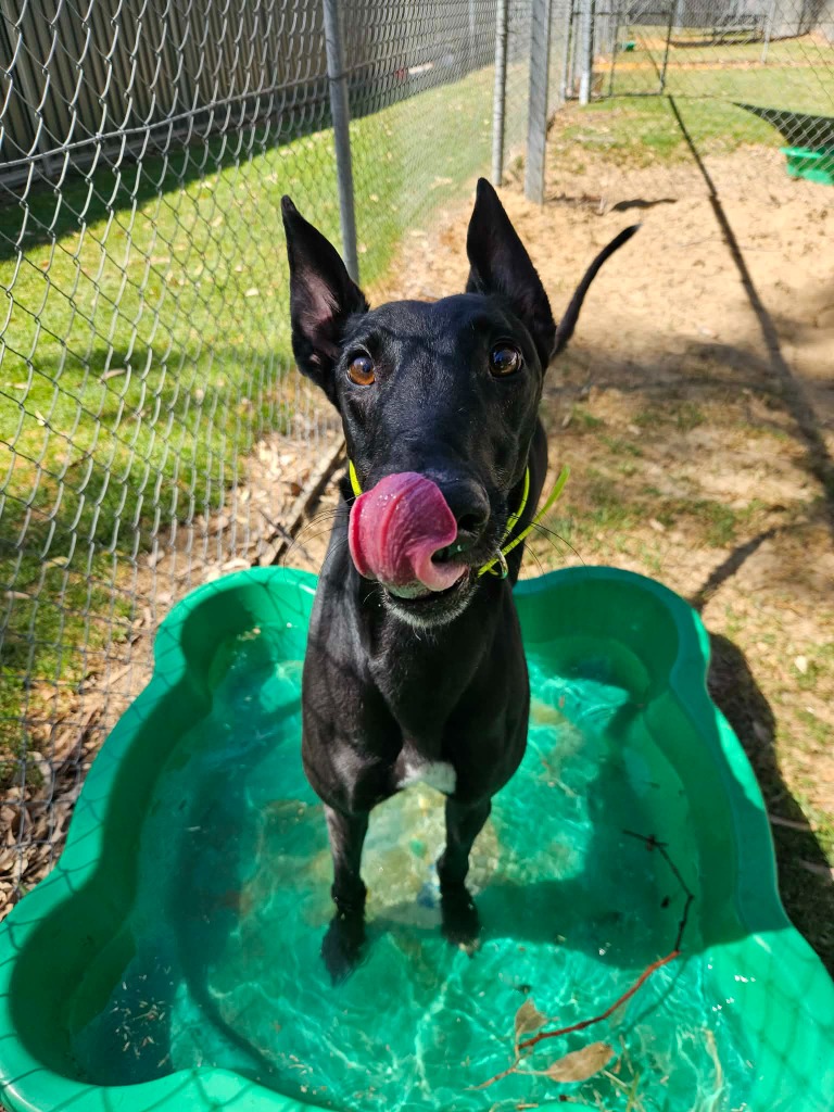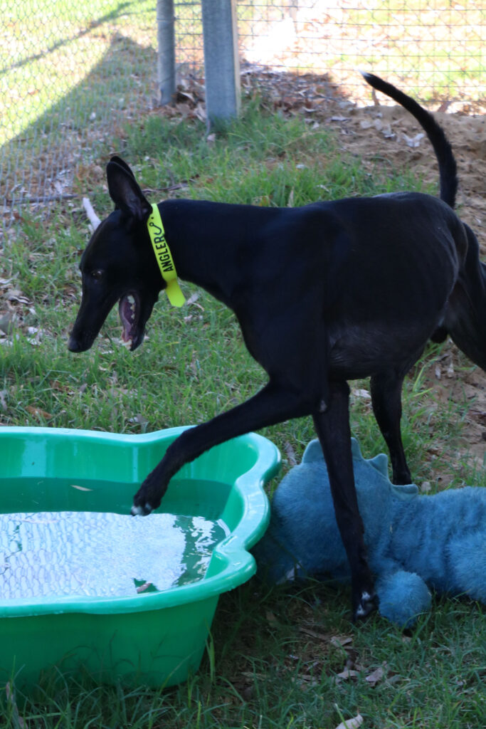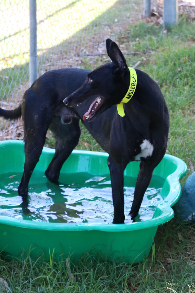 Angler is a super social and happy hound who has all the warmth and joy of a sunny beach day. He’s got that cheeky sparkle of a playful fish darting through the deep blue. Angler could join doggie ‘siblings’ of any size from tiny minnows to big tunas. Angler has been assessed as unable to go to a home with cats. Because his zoomies can roll in like a wave he’d prefer a home where all humans are nine years or older, people who can enjoy his fun goofy splashes of energy. Angler can stay home alone for up to three hours and with canine company and some training he may be able to stretch that time as he settles into his new waters. He loves one or two 20‑minute walks a day, exploring the neighbourhood currents, sniffing the “seaweed,” and show off his supper waggy tail