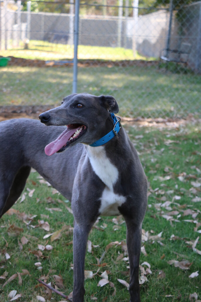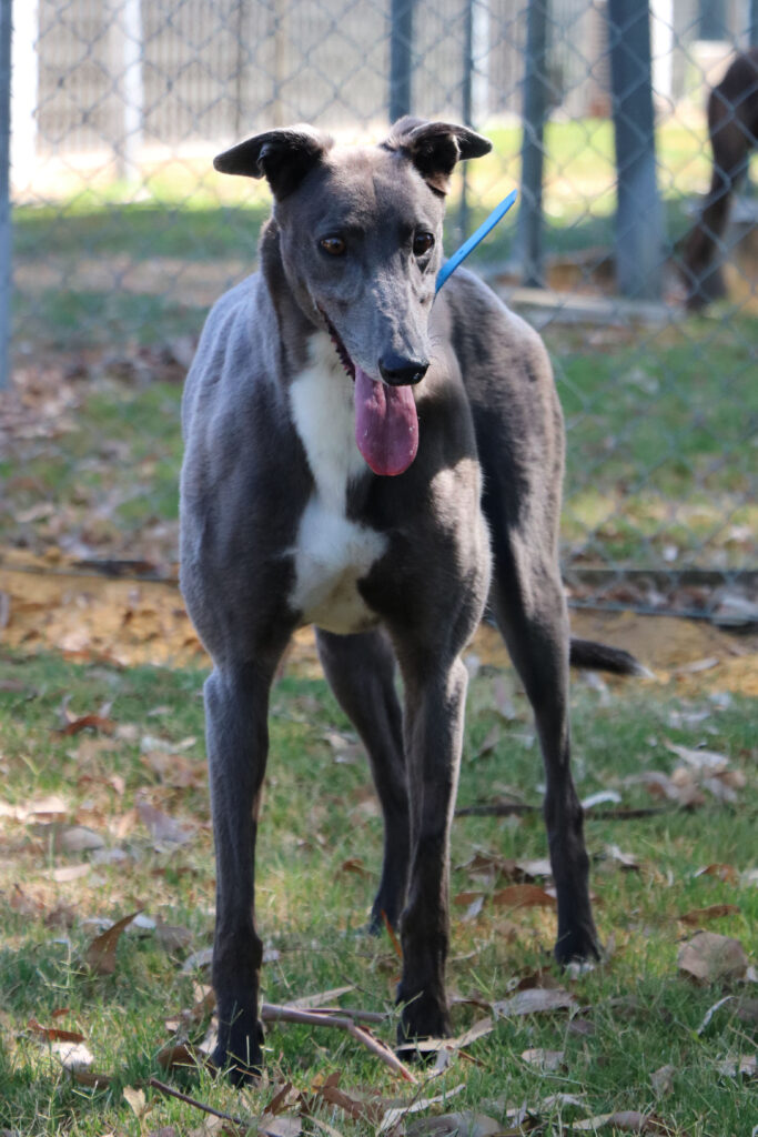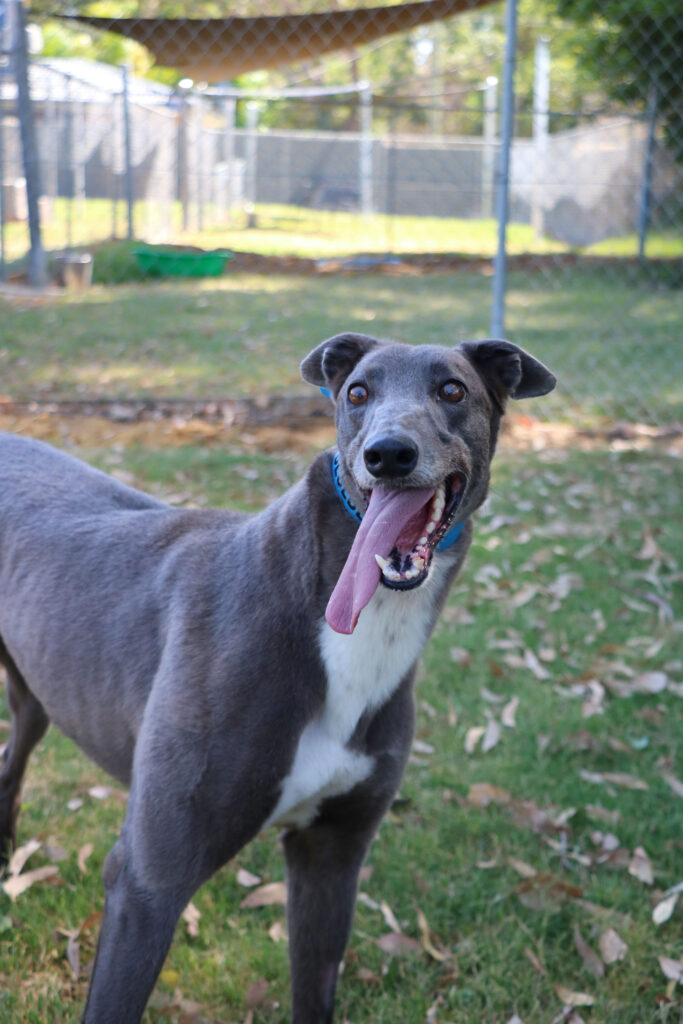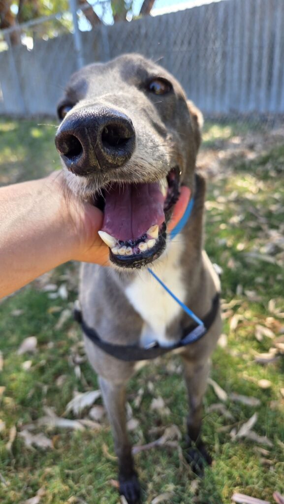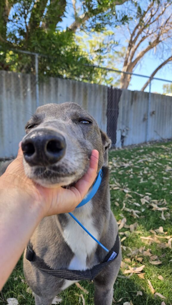 If you’re dreaming of a sweet greyhound who brings peaceful garden vibes and a playful pop of colour to your life, Bluebell is ready to take root and flourish in her forever home.