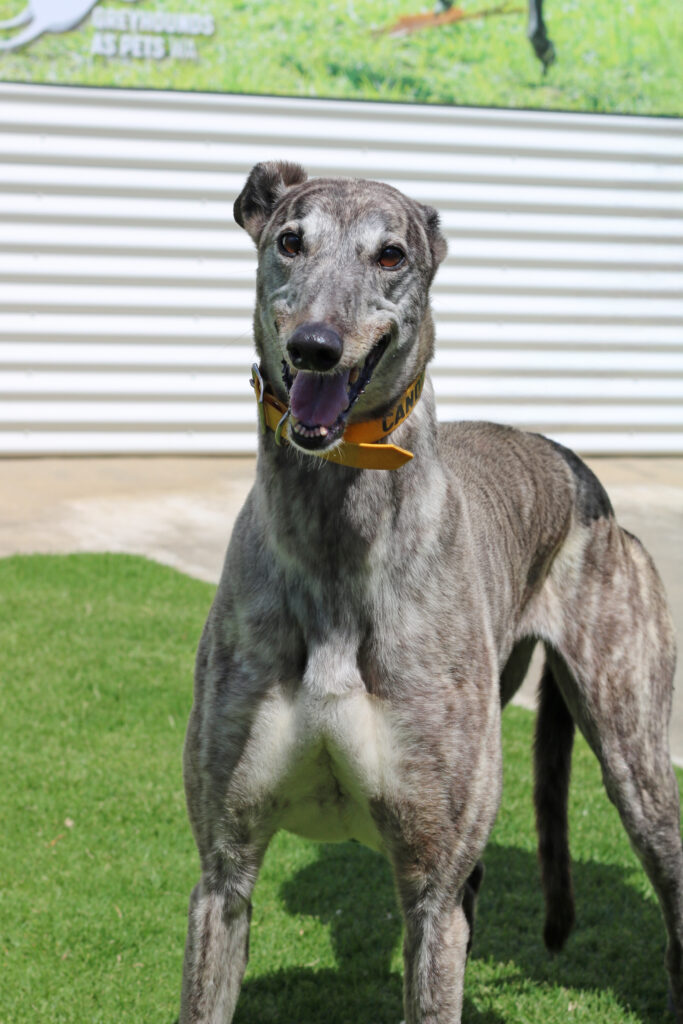 Candy Corn is the sweetest lil hound that will feel your life with treats, no tricks! This friendly older lady may have a bit of a powder sugar face but you would never know her age with her zest for life. She could happily share her treat jar with doggie ‘siblings’ of any size but would do best with children nine years or older as her bubbly confidence might be a little too full of flavour for tiny tots. Candy Corn has been assessed as unable to go to a home with cats. She can stay home alone for up to three hours, which may lengthen with a bit of training and a canine companion. Candy Corn has a serious sweet tooth when it comes to food and affection! With one or two 20 minute walks a day where she can give big wiggly hellos to everyone she meets and a few well-earned treaties, she will keep her tail wagging and her heart full.