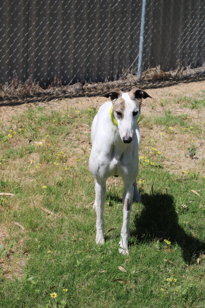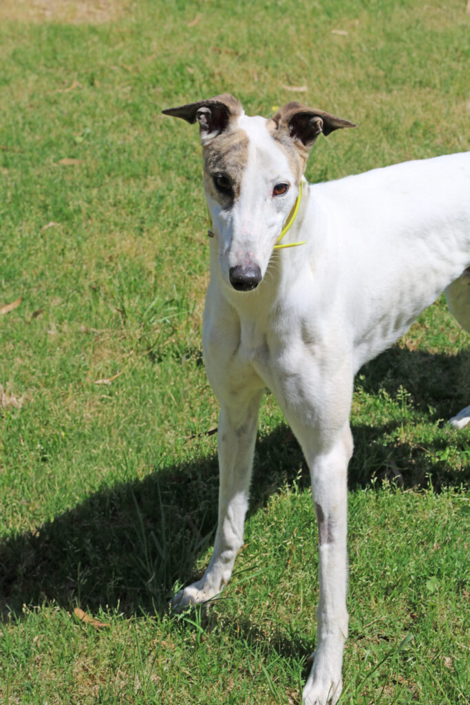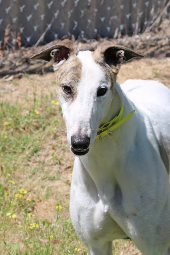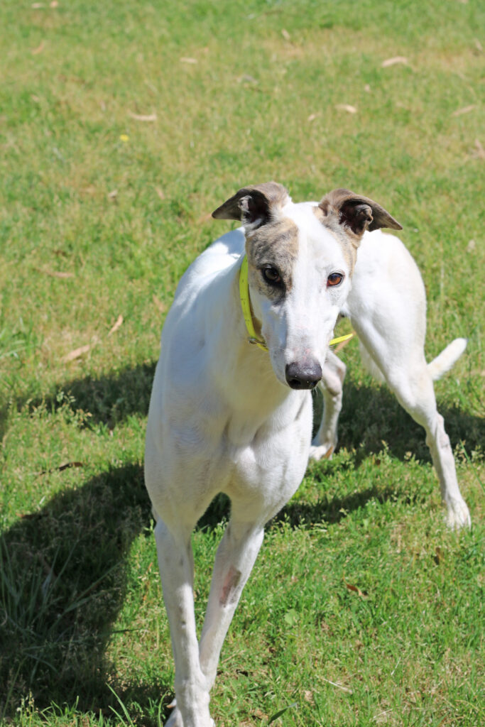 Say hello to Casper the friendly hound, a sweet and friendly boy full of spirit. With his affectionate and bright personality, Casper is sure to haunt your heart (in a good way). Casper could share his home with medium or large doggie ‘siblings’ that compliment his social and playful nature. Casper has been assessed as unable to go to a home with cats. Human pals aged nine and up would be perfect as his enthusiasm when toys are involved might be too much for tiny tots. When left to his own ghostly devices Casper can happily stay home for up to three hours. This time could lengthen with canine company or toy enrichment. Like a typical greyhound, he doesn’t need endless adventures, just one or two 20-minute walks a day where he can investigate every mystery from beyond the fence will keep him perfectly content.