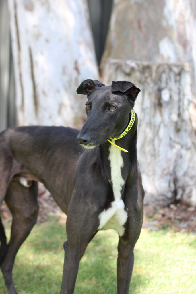 Gladiator may look like he’s ready to conquer the Colosseum with his tall stature and stoic looks, but he is a soft, gentle and slightly shy hound. Gladiator could share his arena with a medium or large doggie ‘sibling’ who will show him the ropes of pet life. This noble lad would do best in a calm household with children aged 14 or older where gentle lovin’ will help him continue to grow in confidence. Gladiator has been assessed as unable to go to a home with cats. Gladiator could stay home alone for up to three hours at a time and this could lengthen with canine company or routine. Gladiator’s exercise needs are simple, one or two 20 minute walks a day are enough to keep his tail wagging. With a little love and encouragement Gladiator is sure to blossom into a confident, good boy every home dreams of!