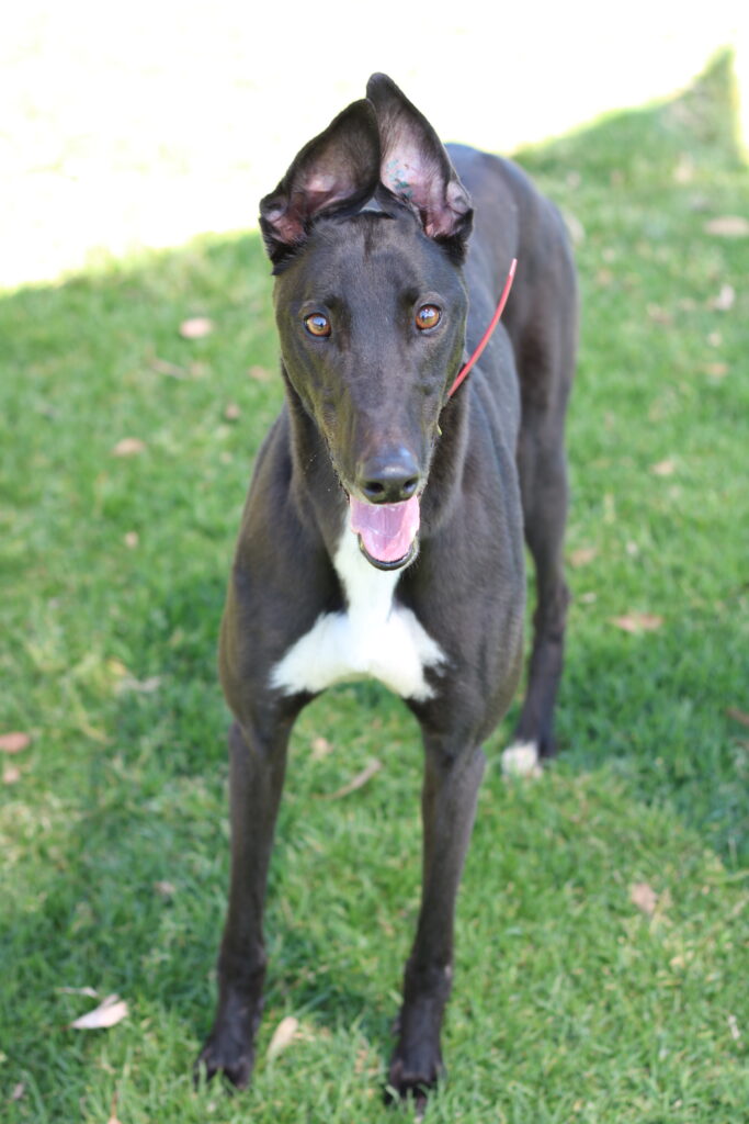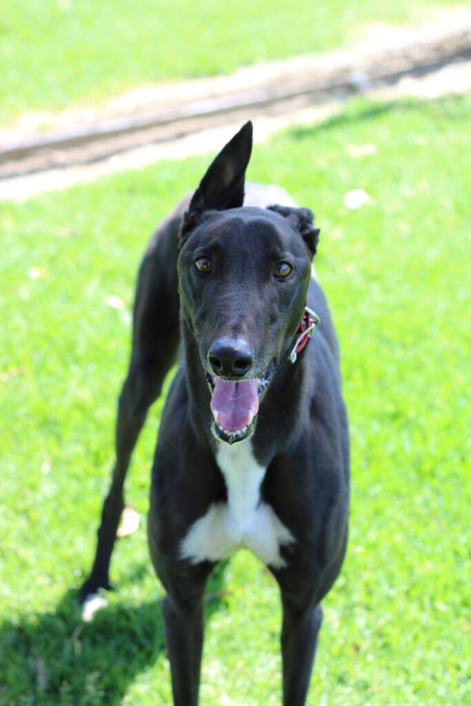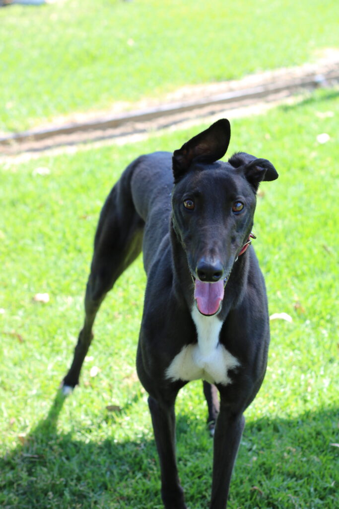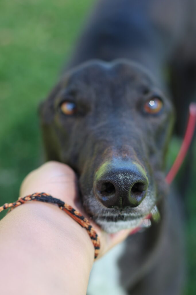 Hagrid is our big-hearted, and big bodied, hound with an air of magic. Much like his namesake this gentle giant is full of warmth, mischief and love. Hagrid loves people and is always ready to cast a charm on you with his waggy tail and cuddly leans. Hagrid could happily share his castle with doggie ‘siblings’ of any size, from small pups to fellow greyhounds if they matched his friendly energy. Hagrid has been assessed as unable to go to a home with cats. When it comes to young wizards Hagrid would best suit children nine years old or older as he can start whizzing around like on a broomstick when playing. Hagrid is an active, playful boy who’s full of bertie botts every flavour beans and always up for a bit of fun, toys are his favourite. Hagrid could stay home along for up to six hours at a time, this could lengthen with canine company and routine. Hagrid does not need long strolls through the forbidden forest, just one or two 20 minute walks a day will keep his tail wagging as fast as wand flicks.
