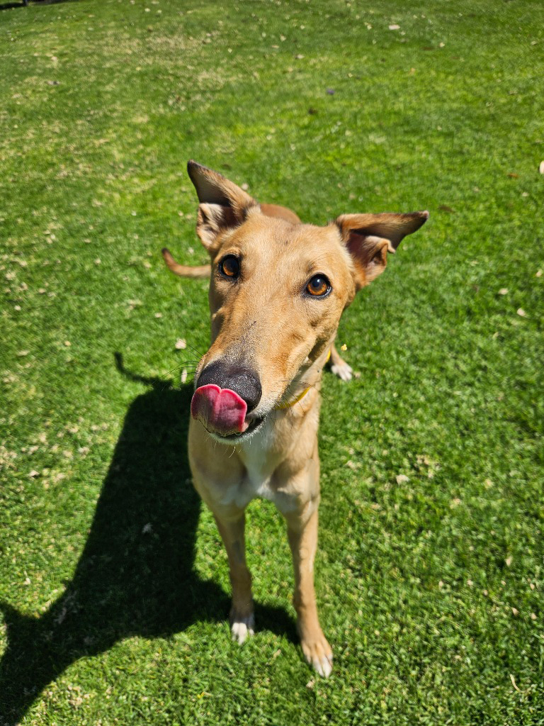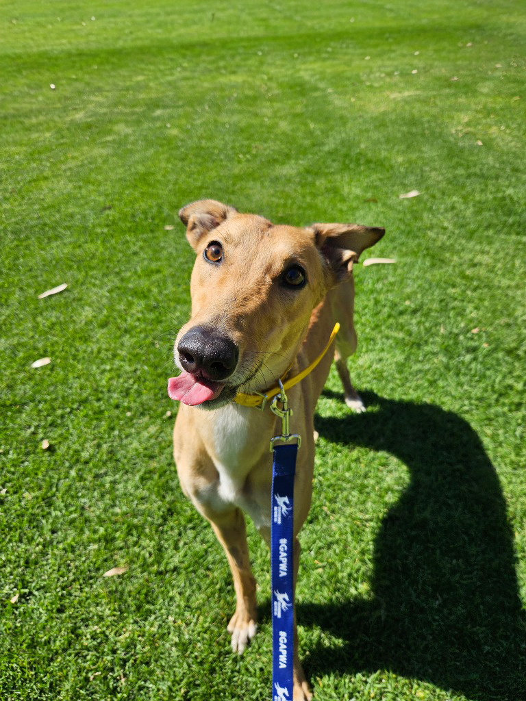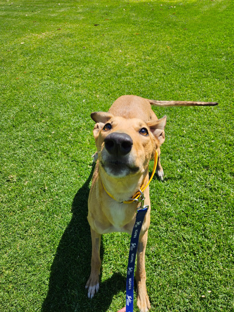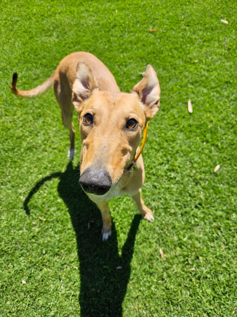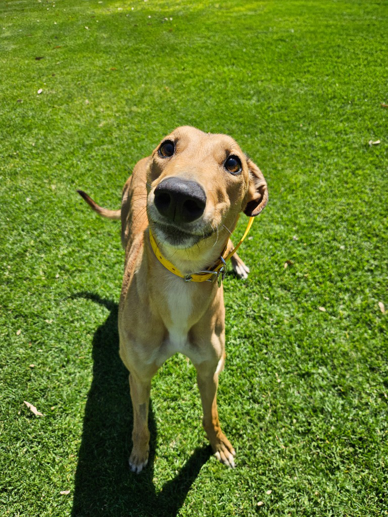 Honey is the sweetest little blossom in our garden, always buzzing with joy and sunshine. Honey flits through her day with enthusiasm and affection. Honey could share her hive with a medium or large doggie ‘sibling who complimented her playful nature and zest for life. Honey has been assessed as unable to go to a home with cats. She’s best suited to a home where the little beekeepers are aged 14 years old or older as her bouncy play style might be a bit too much for young children. This bright little hound thrives on connection and loves to be involved in whatever her humans are doing. Honey could manage up to three hours solo and with a canine companion or a bit of training that time could lengthen. Honey loves showing off her zoomies, flitting around like a bee in a flower field! A couple of 20-minute walks and some playtime each day will keep her tail wagging as fast as wings in flight.