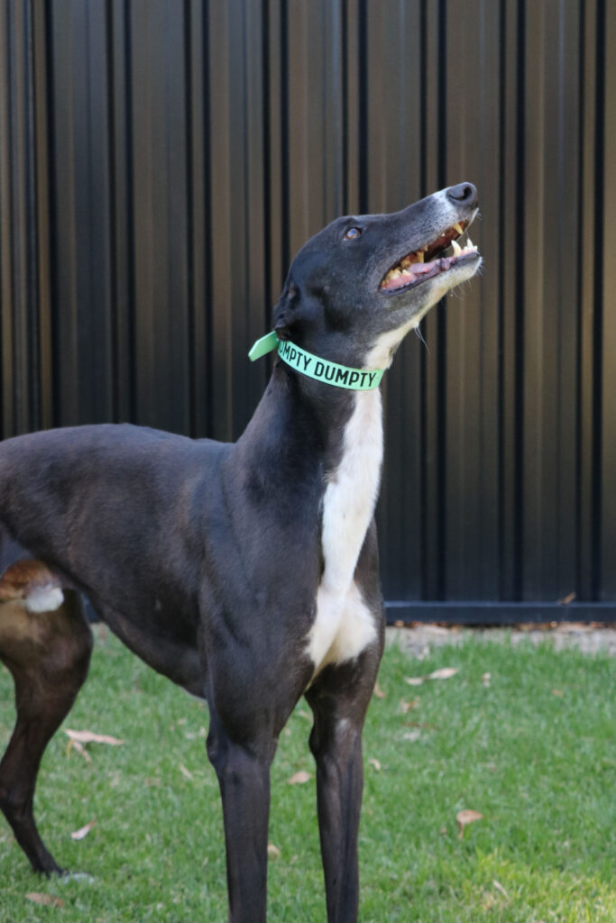 Humpty Dumpty is an affectionate, easy going and friendly boy who is all sunny‑side‑up personality. No cracks in his personality, he’s an absolute eggcellent companion. Humpty Dumpty could join doggie siblings of any size, from hummingbirds to big emu‑tall friends. Humpty Dumpty has been assessed as unable to go to a home with cats. He’s gentle and easy enough to join homes with children as young as five. One or two 20‑minute walks a day is perfect for him. With his great leash manners, he strolls beside you smoothly, no big dramatic falls from walls. Humpty Dumpty is suited for full‑time workers as he can stay home alone for more than six hours at a time if he has a cozy nest (dog bed). Humpty Dumpty has Pannus, an eye condition which is easily treated with daily eye drops and does not affect their quality of life.