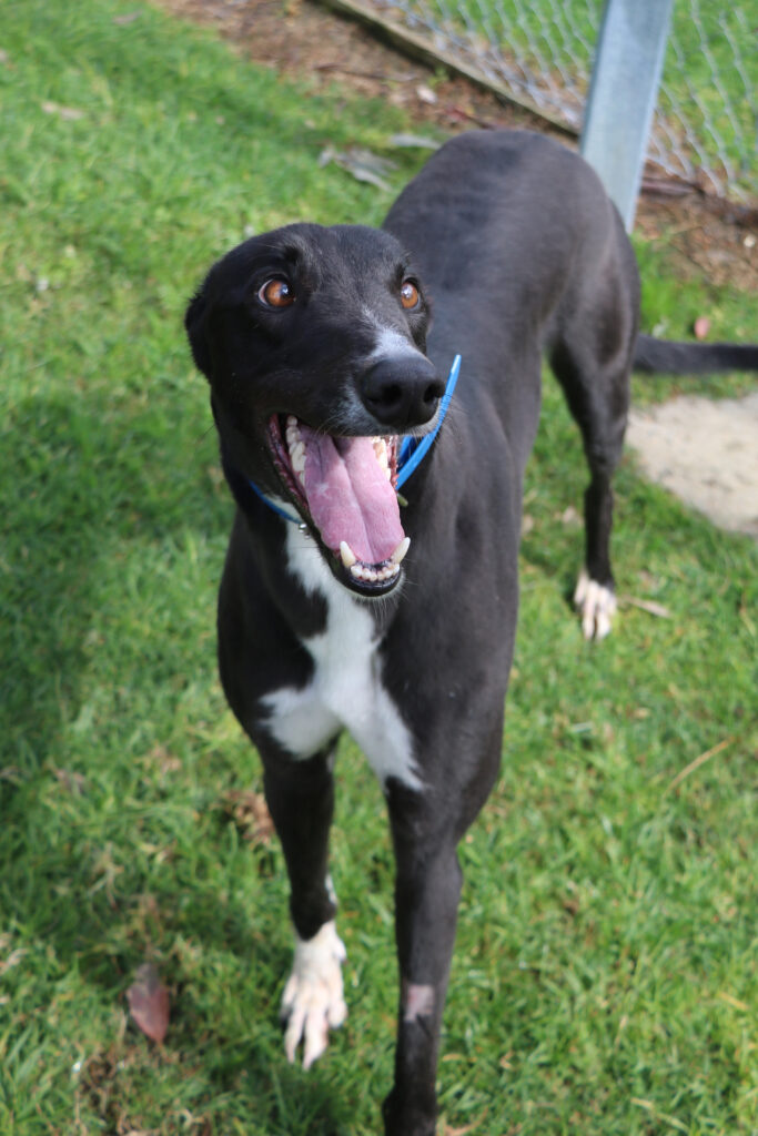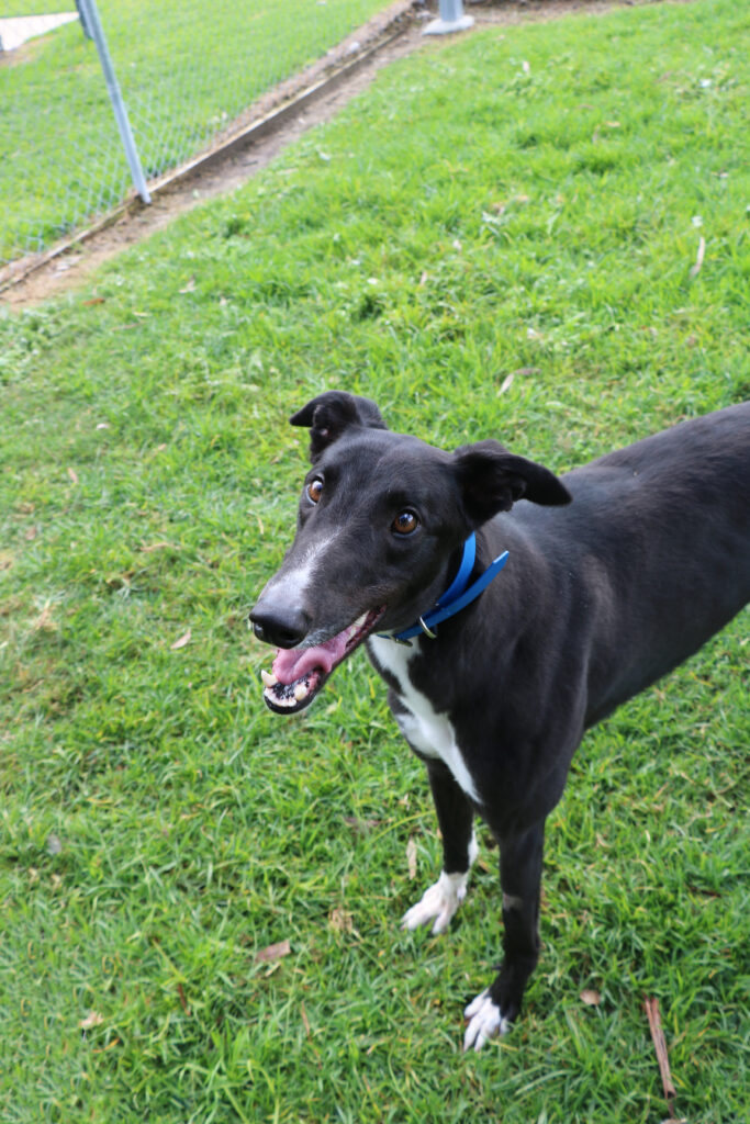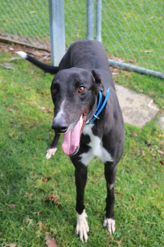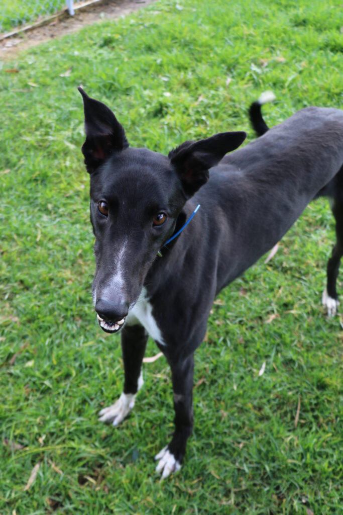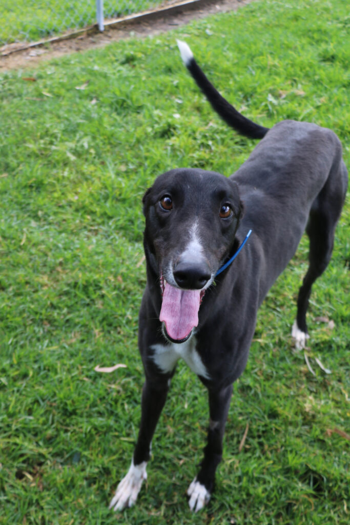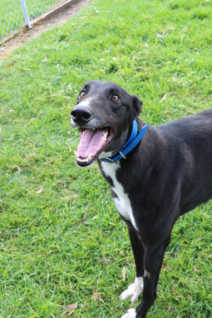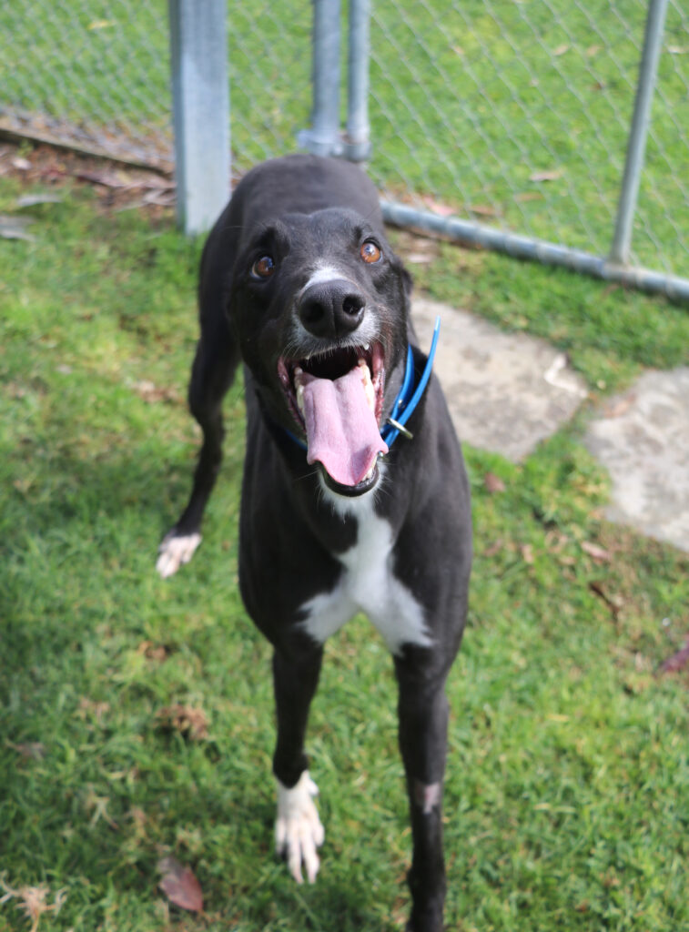 Jacques is a young hound at just one and half but is as warm as a fresh croissant and as sweet as a macaron. His name means “one who follows,” and nothing could be truer as this loyal lad loves to be by your side and soak up affection. He is hoping to say bonjour to a home that can guide him and show him the ropes of pet life. Jacques would adore having a canine sibling of any size to help his transition but he’s also happy to fly solo. Jacques could stay home alone for more than size hours at a time and when you return expect a greeting full off kisses and wriggles. Although very friendly Jacques would do best in a home with children aged nine years old or older as he is not experienced with boisterous and rambunctious young tots. Like a typical greyhound, Jacques only needs one or two 20-minute strolls each day to keep his tail wagging, although his puppy personality may turn them into longer adventures as he stops to check out every corner, baguette crumb and say hello to every friendly face.