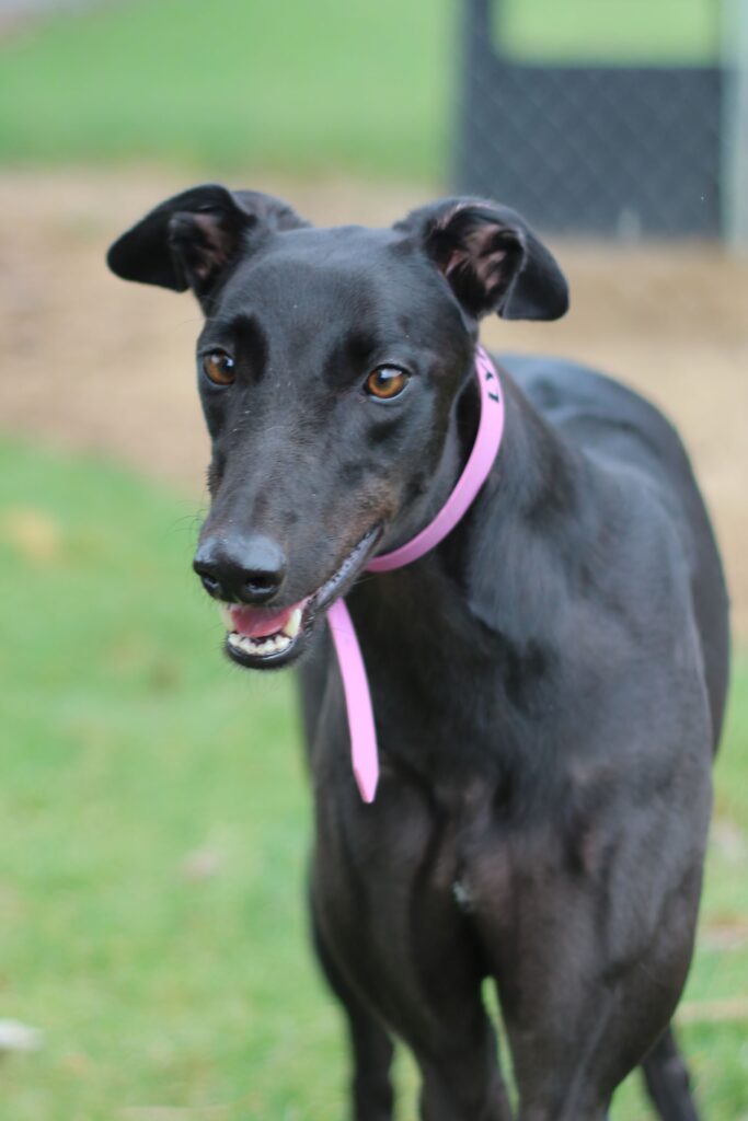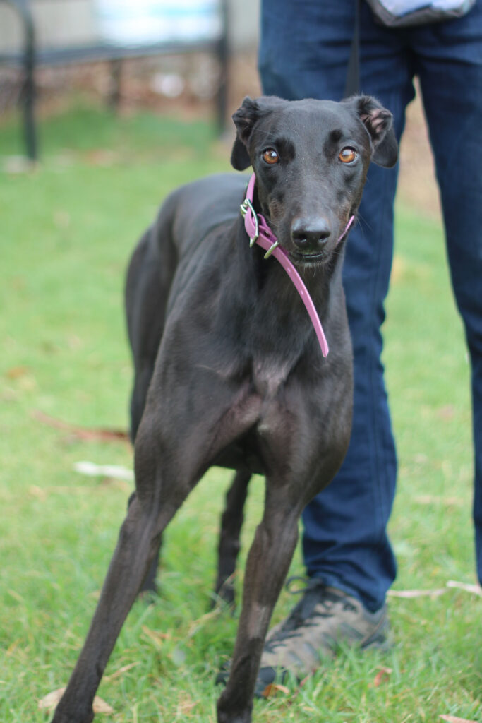 Lyra is a little constellation of sweetness sparkling with starry‑eyed charm. She moves through life like a shooting star; bright, joyful, and guaranteed to catch your attention. Lyra would do best with medium or large doggie siblings as her play style can be a bit “zooming comet” and may be too much for smaller pups. Lyra has been assessed as unable to go to a home with cats. Because her play can be enthusiastic she’d prefer a home where all humans are nine years or older, people who can enjoy her starbursts without getting out of orbit. She can stay home alone for up to six hours and with canine company and routine she may be able to extend that. Exercise needs are classic greyhound, one or two 20‑minute walks a day to explore the neighbourhood, sniff the breeze and shine her friendly starlight on everyone she meets.
