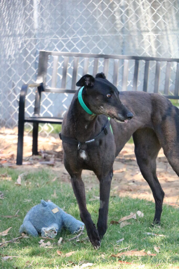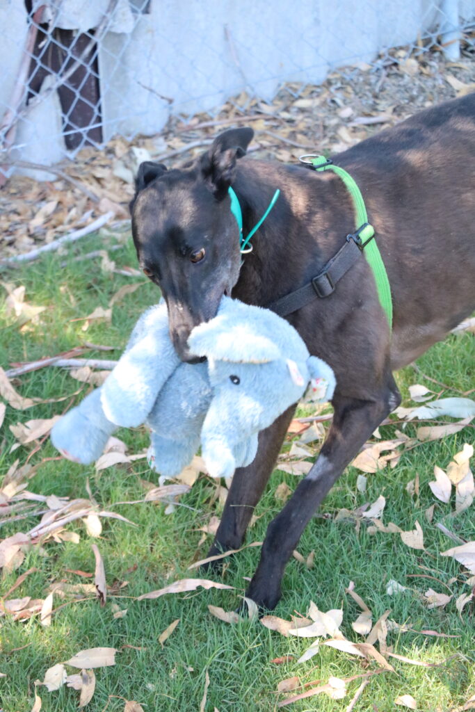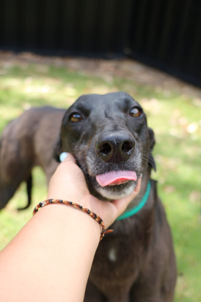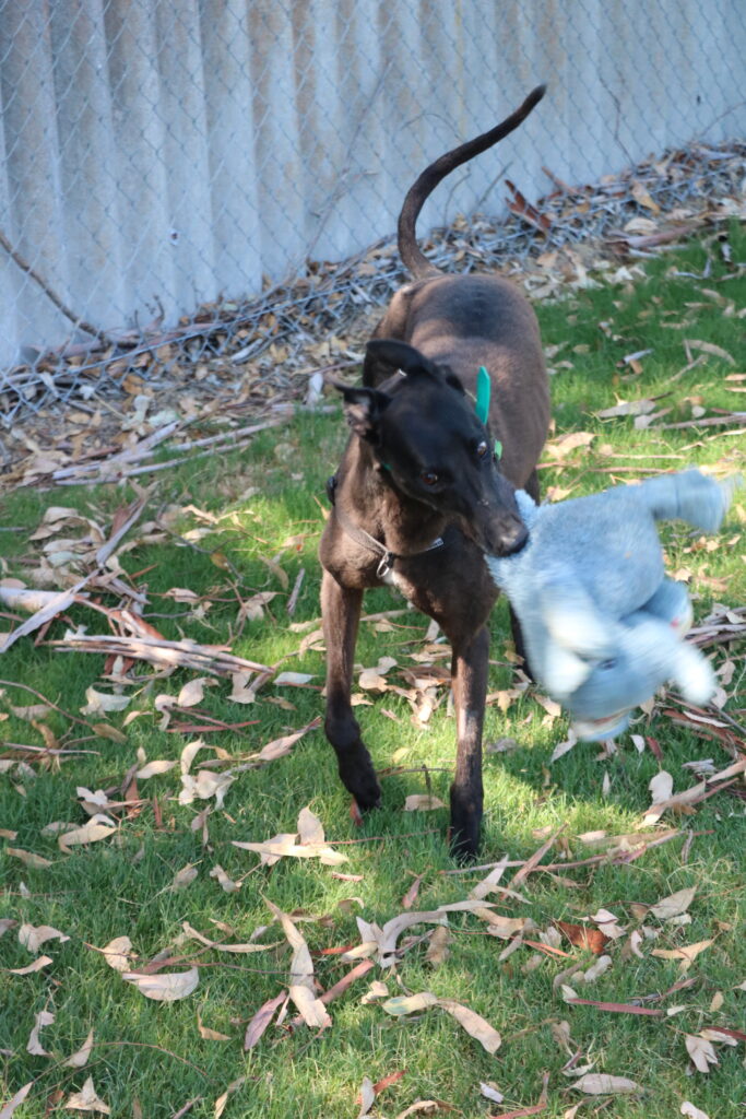 Makita is a social and ready‑to‑go girl who brings all the energy of a fully charged power tool straight out of the shed. She has a tail that is always spinning the full 360 degrees like a whipper snipper. Makita could join a crew of fellow large‑sized doggie ‘siblings’ who compliment her RPM. Makita has been assessed as unable to go to a home with cats. Because she’s playful, enthusiastic and not always aware of her own “voltage” she’d do best in a home where all humans are nine years or older. She would love humans who enjoy getting involved in playtime. Makita can stay home alone for up to three hours, recharging her batteries. With canine company and some training she may be able to extend that time. Makita thrives on one or two 20‑minute walks a day plus some playtime. She approaches new adventures like a dog‑shaped multi‑tool, versatile, excited and always ready for action.