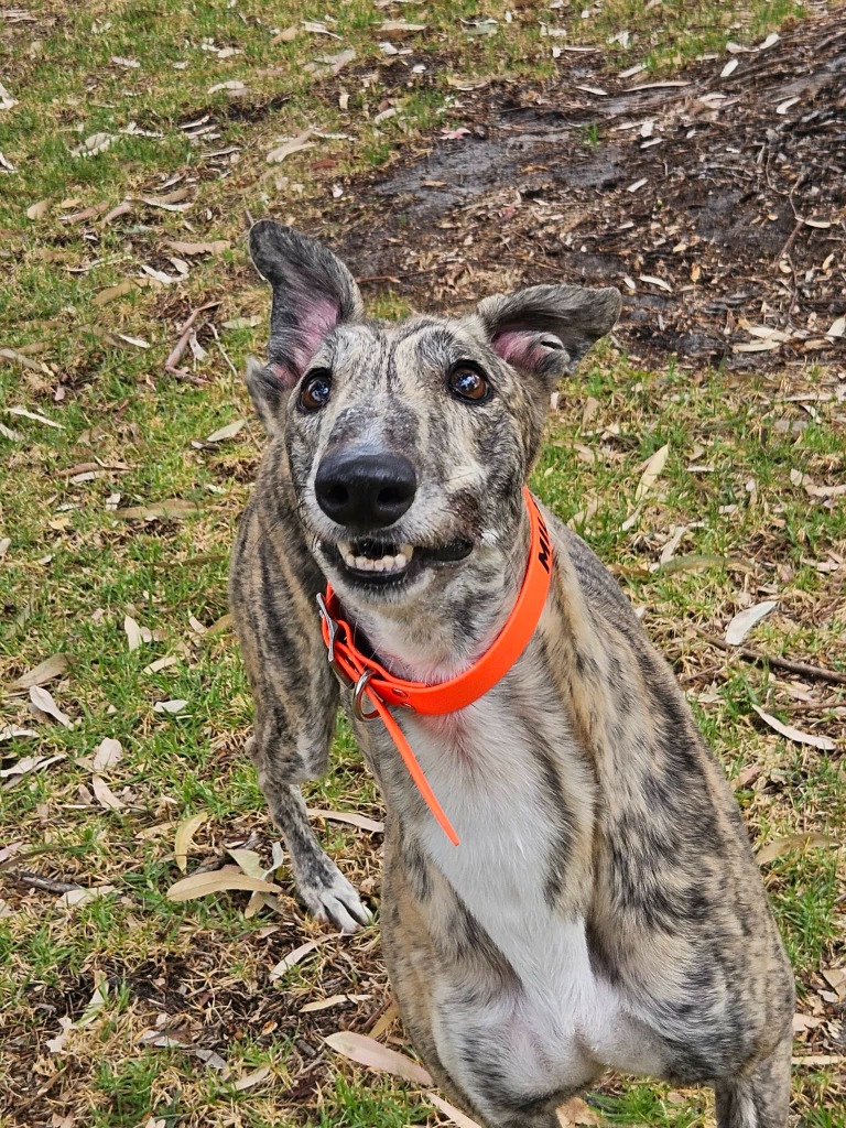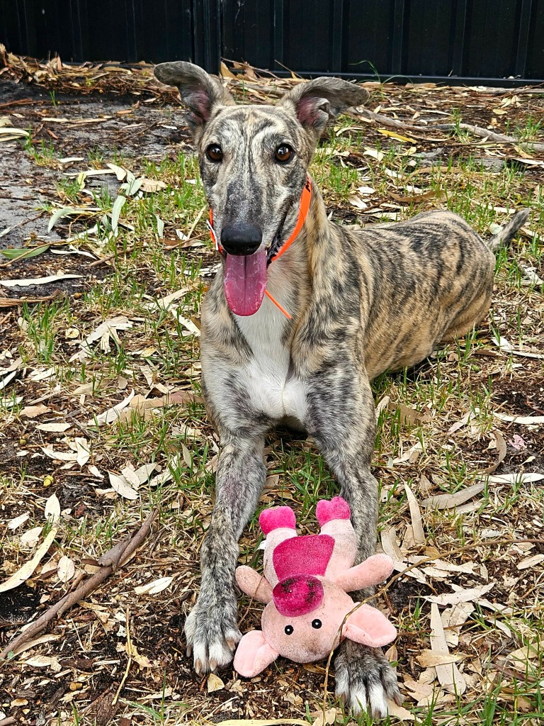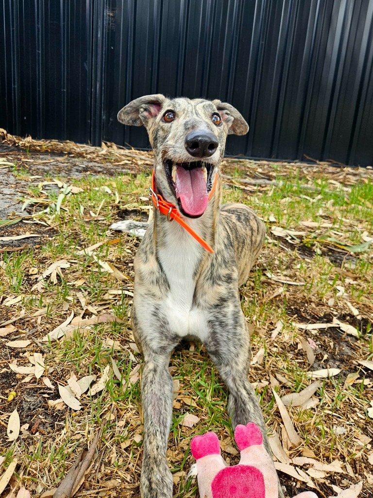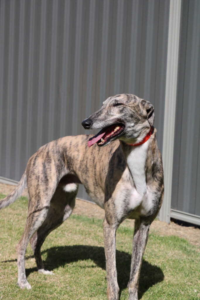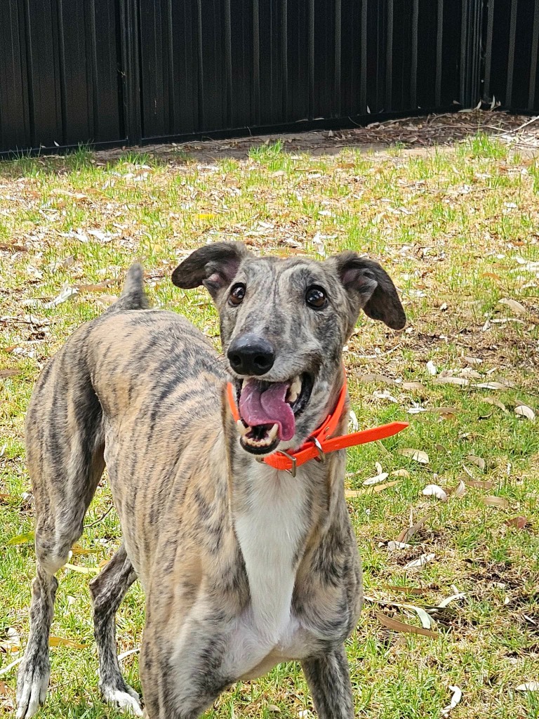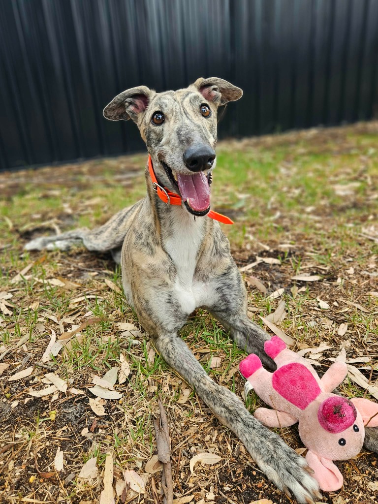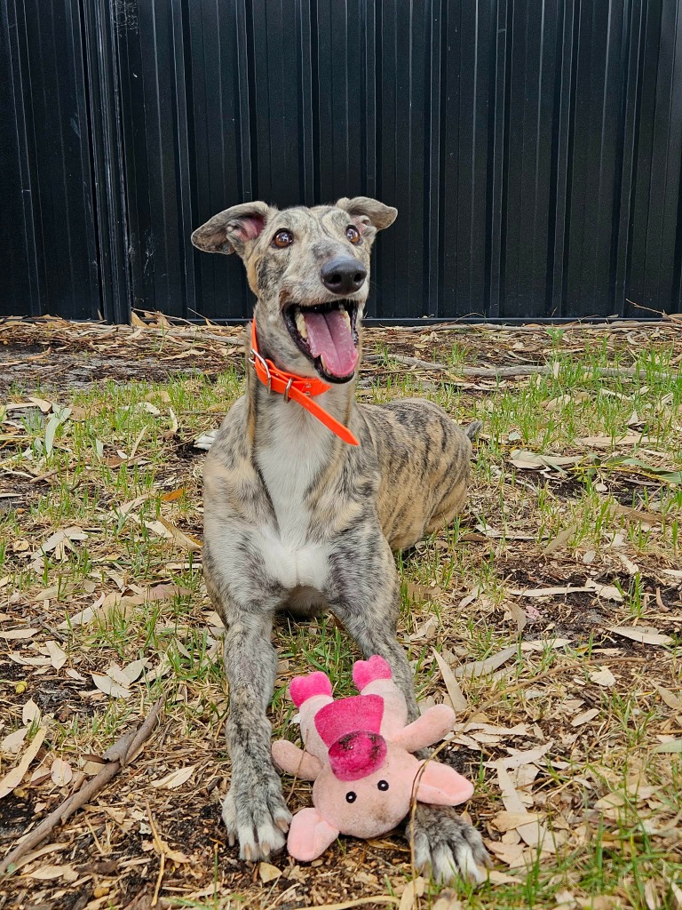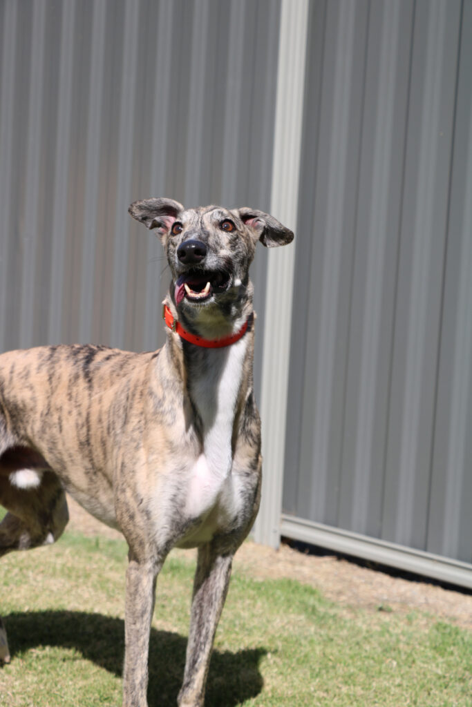Miles has the face and personality that will inspire any song writer to write their next big hit. Ready to put you in a finger-tapping good mood, this friendly and active fella is ready to get Footloose and fancy free with his new people. Fantastic on four paws, Miles loves a good ear rub is just a happy-go-lucky guy. Miles prefers his two-legged friends to be on the quieter side, and so his youngest friend would need to be nine years or older. Miles has not been assessed as suitable to join a home with cats. Miles believes the best time spent is with the people you love, and he’d prefer to not spend more than three hours alone. Of course, if he had a canine companion by his side, he could keep himself occupied for longer. It would be best if his canine companion was on the larger side, maybe even another greyhound! Ready to take the next step and adopt Miles? Submit your application today.