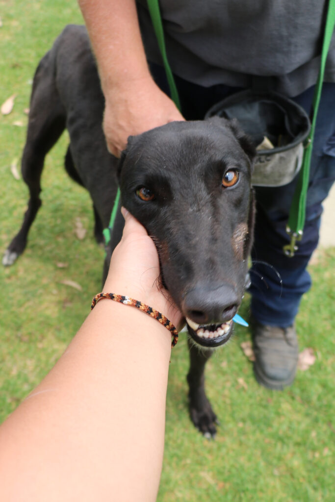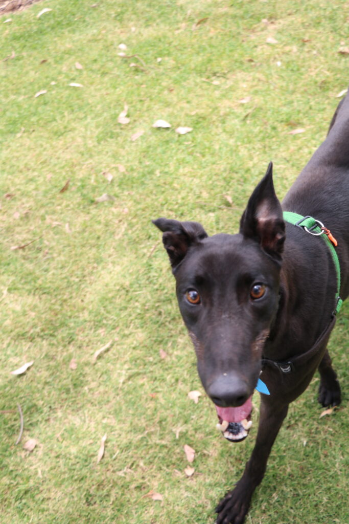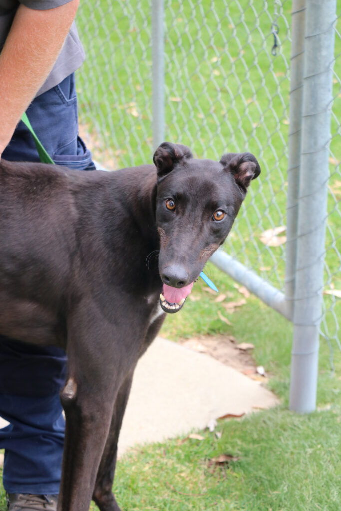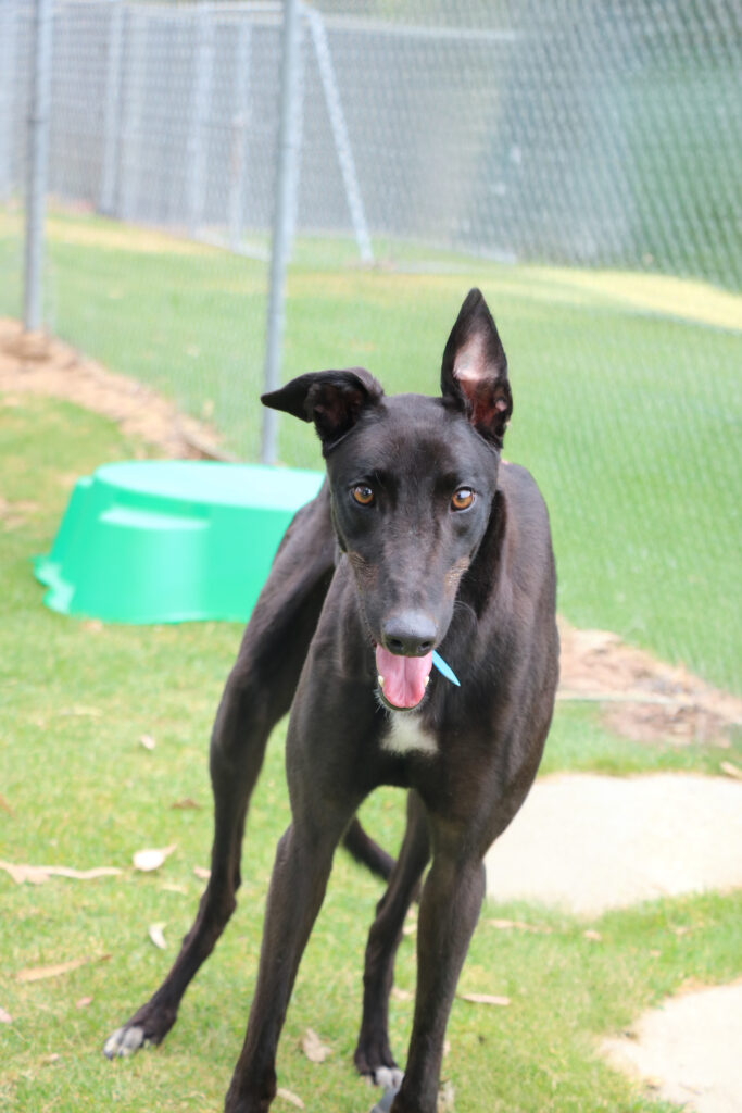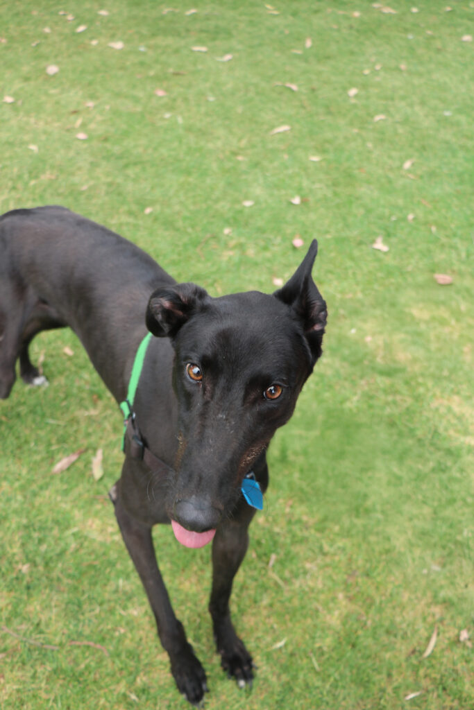 Nobby is a bright and joyful young hound who puts his whole heart into everything in life. At just one and a half he still has some aspects of puppyhood in his personality but he has been showing the team how trainable, engaged and eager to please he is. Playful and sociable, Nobby could join a medium or large sized doggie ‘siblings’ who would enjoy a fun loving companion. Nobby has been assessed as unable to go to a home with cats. Humans nine years old or older would suit him best as he would love family members that can join in on his play time. Nobby is still building his confidence with alone time but could stay home alone for up to three hours at a time. With training and routine he is sure to become the bestest boy ever! One or two 20-minute walks and a few play sessions (which he LOVES) will keep him happy and his tail wagging.
