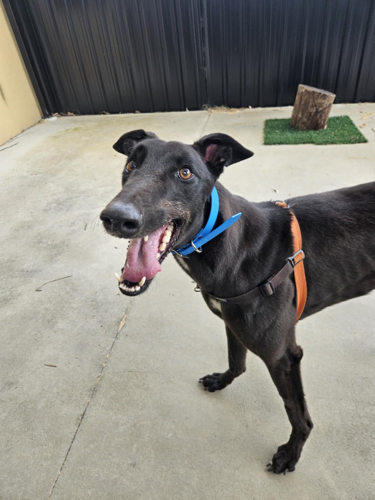 Nobby is a bright and joyful young hound who puts his whole heart into everything in life. At just one and a half he still has some aspects of puppyhood in his personality but he has been showing the team how trainable, engaged and eager to please he is. Playful and sociable, Nobby could join large sized doggie ‘siblings’ who would enjoy a fun loving companion. Nobby has been assessed as unable to go to a home with cats. Humans 14 years old or older would suit him best, especially those who would like to be an active participant of his play times and ongoing training. Nobby is still building his confidence with alone time, so he needs a home where humans are around or where a canine buddy can keep him company. With training and routing he is sure to become the bestest boy ever! One or two 20-minute walks and a few play sessions (which he LOVES) will keep him happy and his tail wagging.