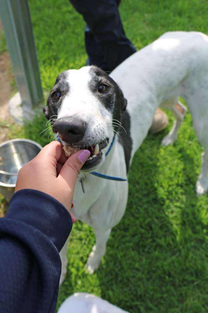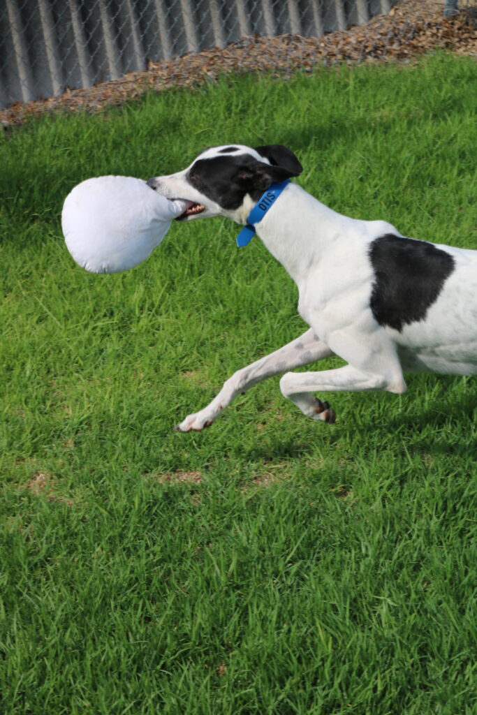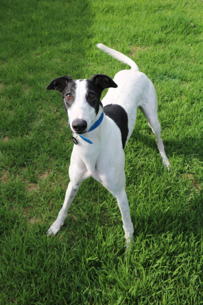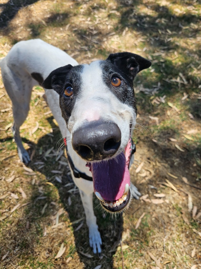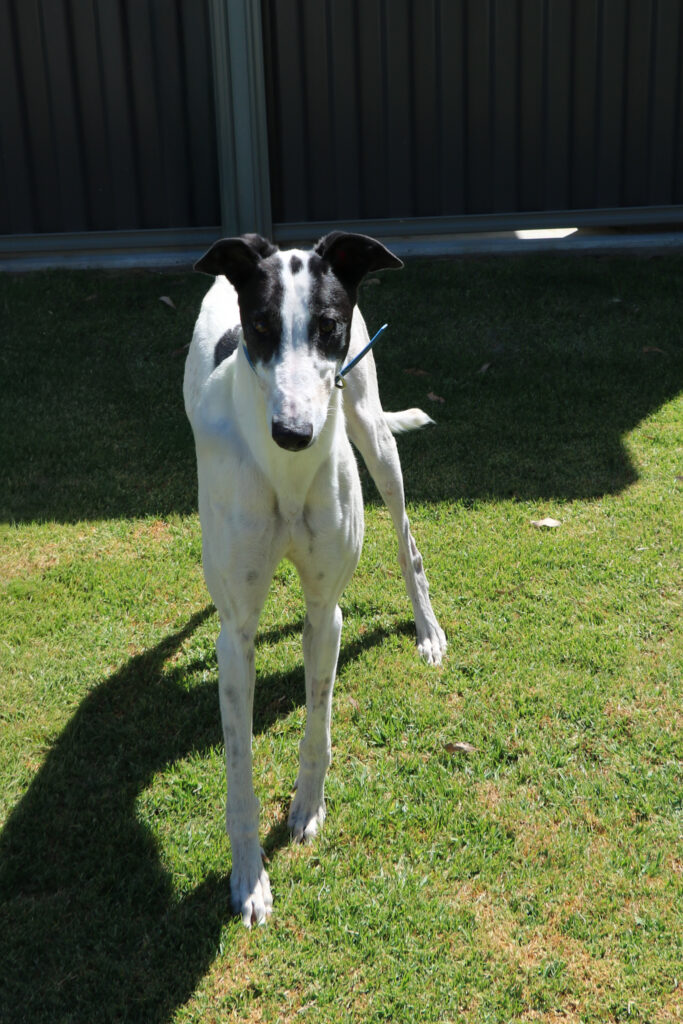 Otis is the kind of greyhound who makes friends wherever he goes, easy going, super social, friendly and wonderfully affectionate. Otis a true people-dog who enjoys connection, pats and being part of whatever’s going on around him. He would prefer to be the only dog in a home but could have doggie playdates and visitors of any size. The humans in Otis’ home would preferably all be aged 14 years or older, as his enthusiasm can bubble over into zoomie-style fun when toys make an appearance. Otis can stay home for up to six hours, with this expected to lengthen with routine and continued practice. Like a typical greyhound Otis just needs one or two 20 minute walks to keep his tail wagging! Our volunteers say he has wonderful leash manners and is a pleasure to walk.
