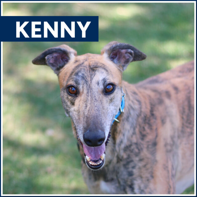 Kenny is pure cuddly affectionate energy wrapped in a handsome greyhound body.