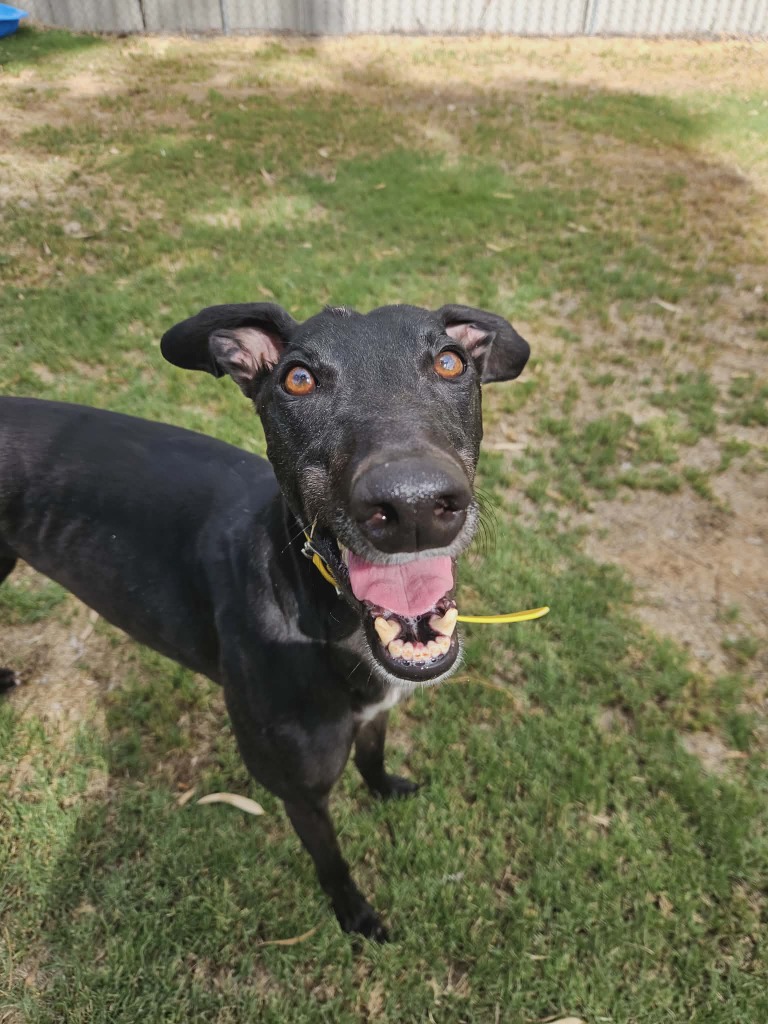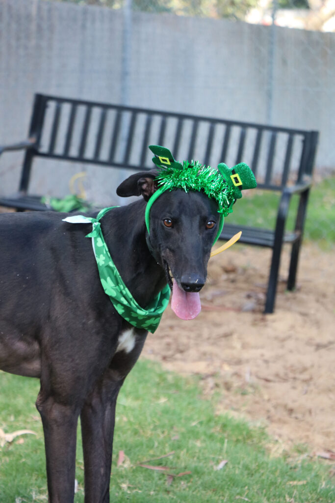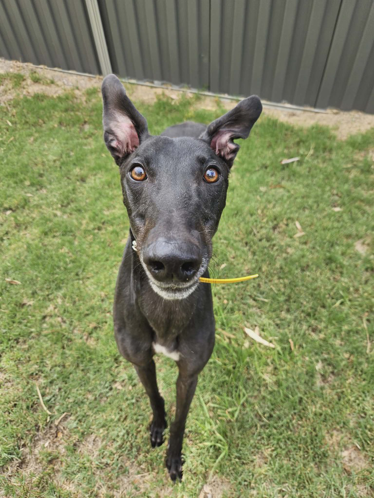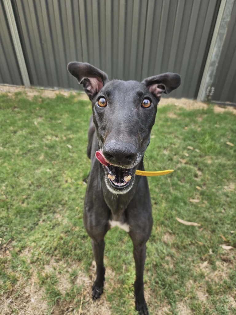 Rummy is a greyhound who’s not a gamble but a guaranteed winning hand. Rummy plays with toys with a full deck and knows exactly how to score smiles from everyone he shows his zoomies off to. Rummy could join a medium or large doggie ‘sibling’, especially one who compliments his playful nature. Rummy has been assessed as unable to go to a home with cats. He can get a bit enthusiastic when playing so his perfect home is where all humans are preferably 14+ and can join in on the fun. Rummy is also an independent player, more than happy to entertain himself with toys while you get on with your day. Rummy can stay home alone for up to three hours, and this may lengthen with canine company plus a bit of training. one or two 20 minute walks and some play each day will keep his tail wagging like he’s won the jackpot.