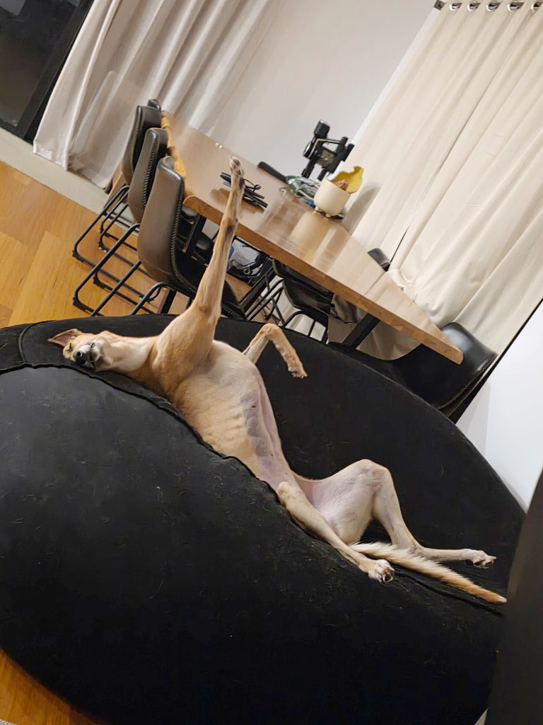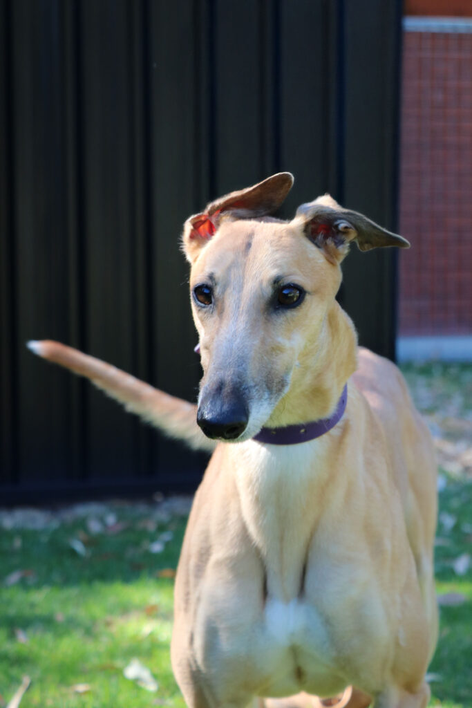 Serendipity is the very definition of joyful chance, she is a bright, happy and sparkling little hound who carries her own pocketful of sunshine wherever she goes. Serendipity join medium or large doggie ‘siblings’ who share in her cheerful vibe. Serendipity has been assessed as unable to go to a home with cats. Serendipity is a polite and lovely girl so she could join human buddies of any age if they’re comfortable around a tall happy girl. Serendipity can stay home alone for up to three hours and with canine company and routine she may be able to stretch that time further as she settles in. One or two 20‑minute walks a day are ideal for her, little strolls where she can bring her joyful energy into the world. She has a cute habit of carrying and parading her toys around as if proudly showing off the treasures life has gifted her.