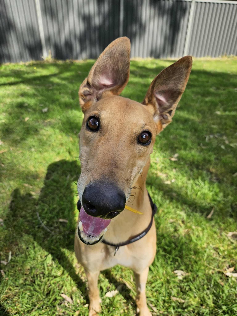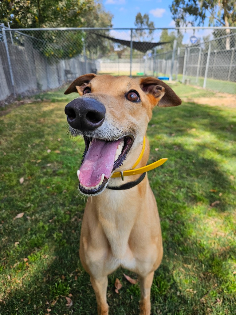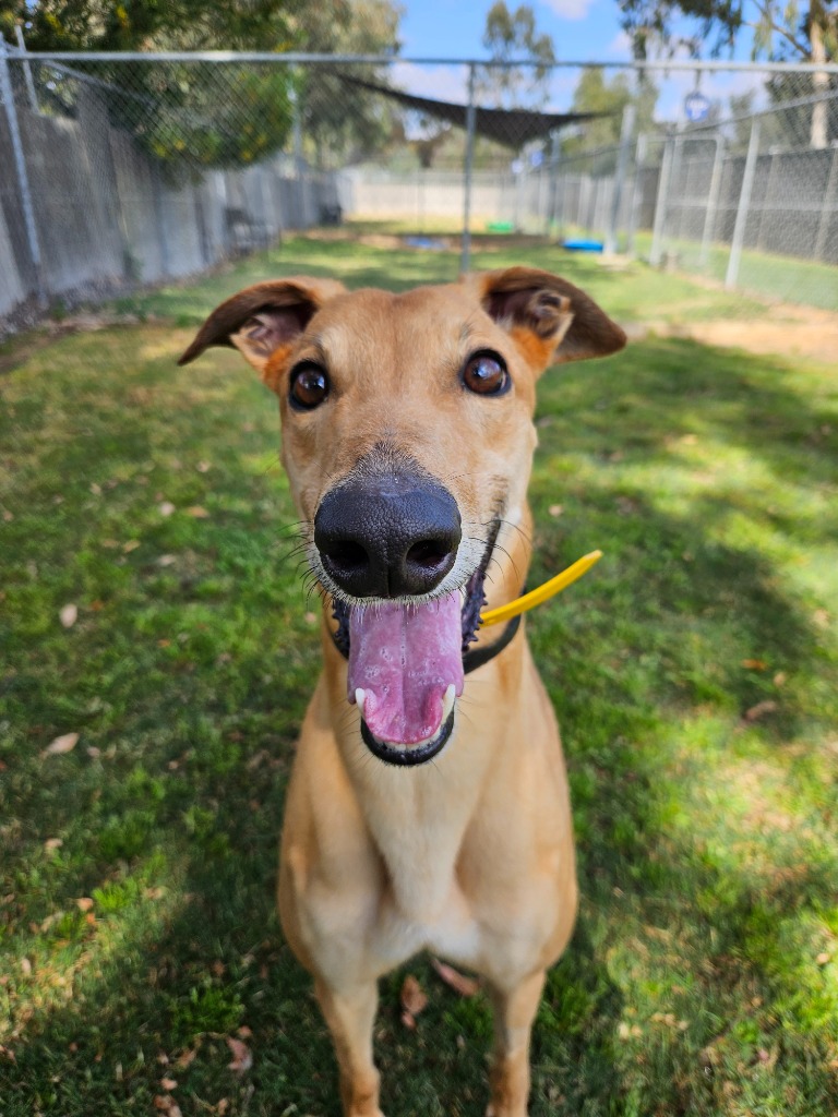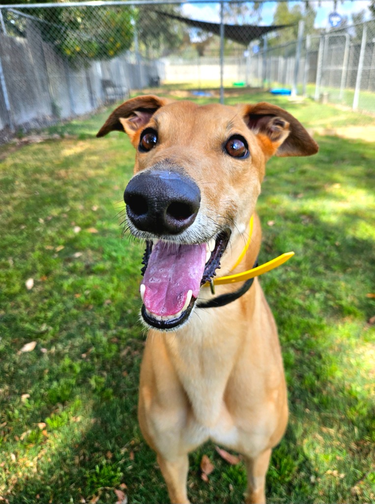 It’s ground control calling for homes for a handsome hound with the call sign Zulu. Every day is flying weather when you’ve got this fawn-colour hound with a personality as bright as the sun by your side! Zulu is happy flying as a solo ‘hound, but could share his landing pad with visiting medium or large sized canine co-pilots who match his playful and enthusiastic nature. Zulu has been assessed as unable to go to a home with cats. This confident captain would do best with junior crew members aged 14+ who are happy to encourage calm play while Zulu develops his polite play skills. After enjoying a stroll around the neighbourhood Zulu loves to crash land into a comfy dog bed for a well-earned snooze. He can handle up to six hours of solo flying keeping himself occupied with toys and enrichment until you return (when you do expect big wiggles and a propeller tail).